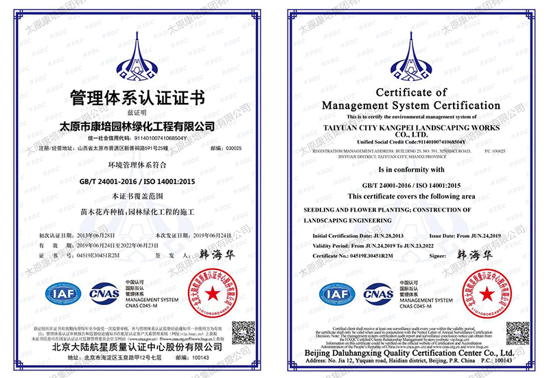 公司現(xiàn)有施工機械2000余臺,在太原、忻州、晉中、運城等7個地市有苗木基地,擁有從花卉苗木培育到園林景觀綠化測繪施工再到養(yǎng)管維護的園林景觀綠化和生態(tài)環(huán)境修復(fù)全產(chǎn)業(yè)鏈,完成和參與了包括省、市重點工程在內(nèi)的1000余項園林景觀綠化、道路綠化、城市改造、市政工程和生態(tài)環(huán)境綜合治理工程,施工足跡遍布全省,超百項工程獲得國家、省、市優(yōu)質(zhì)工程表彰,通過了ISO9001質(zhì)量管理體系認(rèn)證。